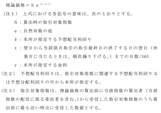 (注4) 限日現金決済先物取引の理論現物価格は、1円未満の端数が生じた場合は、これを四捨五入した値段とする。