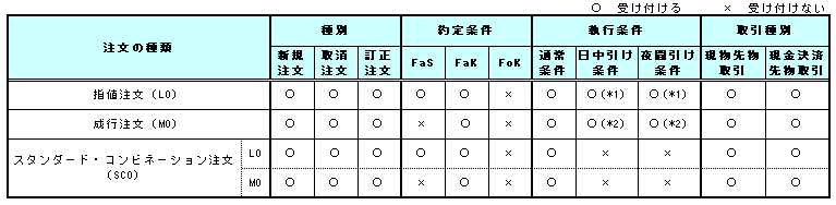 *1 LOに日中引け条件又は夜間引け条件を付して発注する場合の約定条件はFaS又はFaKのみ指定可能。
