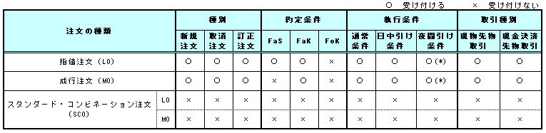 *2 MOに日中引け条件又は夜間引け条件を付して発注する場合の約定条件はFaKのみ指定可能。